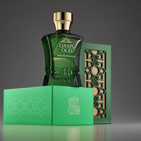 Oasis Oud Eau de Parfum is inspired by the sweetness of water after a long tiring trek through the desert; the coolness and shade of the palm trees from the hot, beating sun; the green, lush grass to relax on and rest a bit before continuing forth on one's journey. Oasis Oud captures the feeling we get when we find the perfect, sweet spot to relax our body, revitalize our mind and reawaken our senses to progress forward.