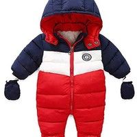 • 【CONVENIENT TO WEAR】The exclusive design of the bear zipper is easy to change clothes for your baby.Warm upgraded snowsuit with detachable gloves, baby hands can also lock warm