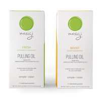A box of 14 On-The-Go Single-Serve Packets of Masigi Pulling Oil Mouthwash. Choose from 2 flavors: FRESH or BOOST.